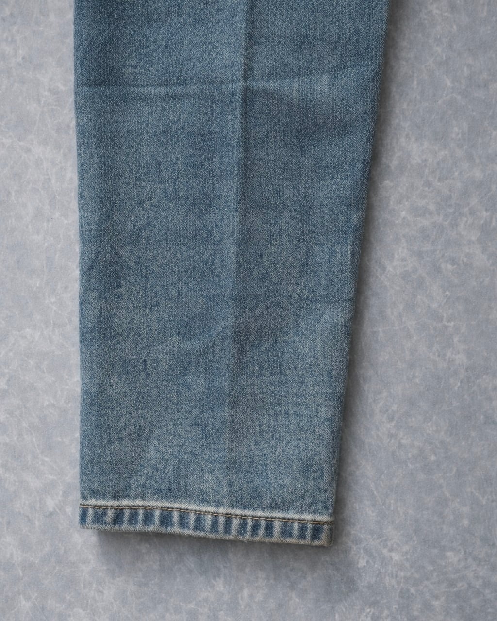 複数回のウォッシュ加工により、奥行きのあるブルーの色味を表現。