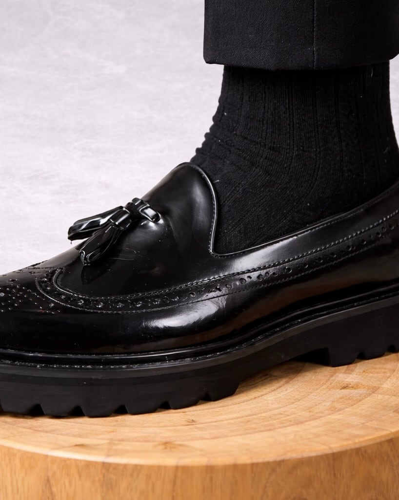 【艶革雅履】ウィングチップタッセルローファー