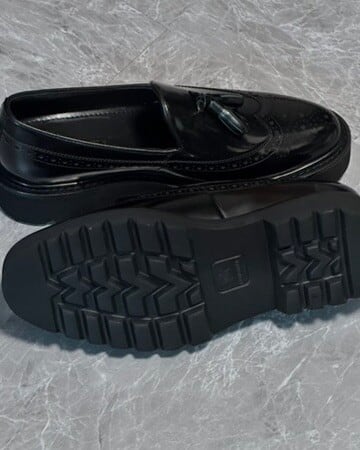 牛革を使用したタッセル付きのローファー。